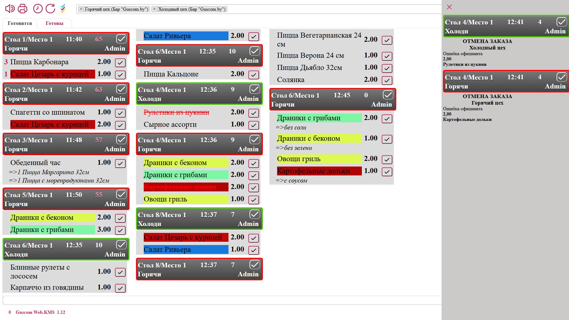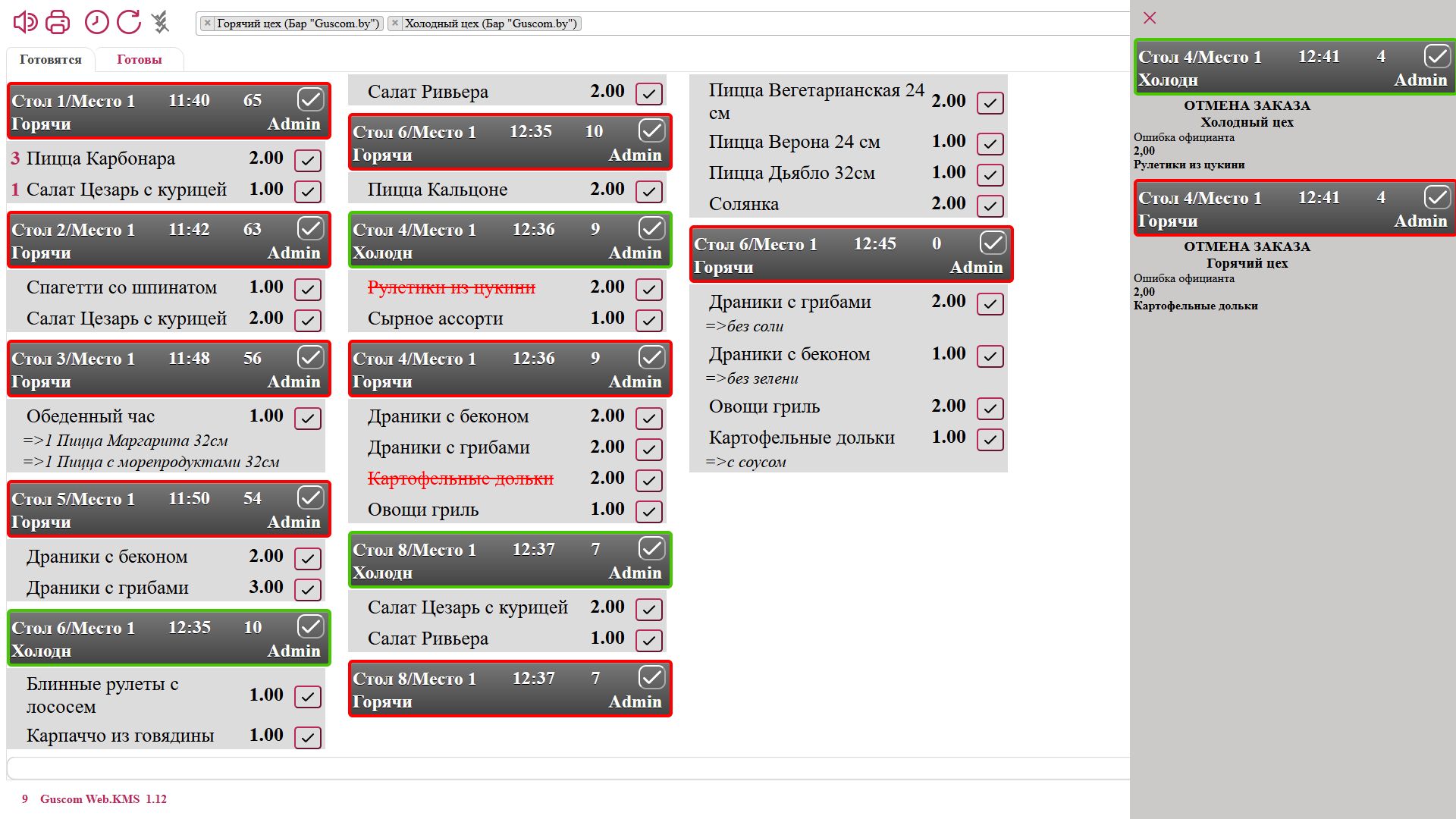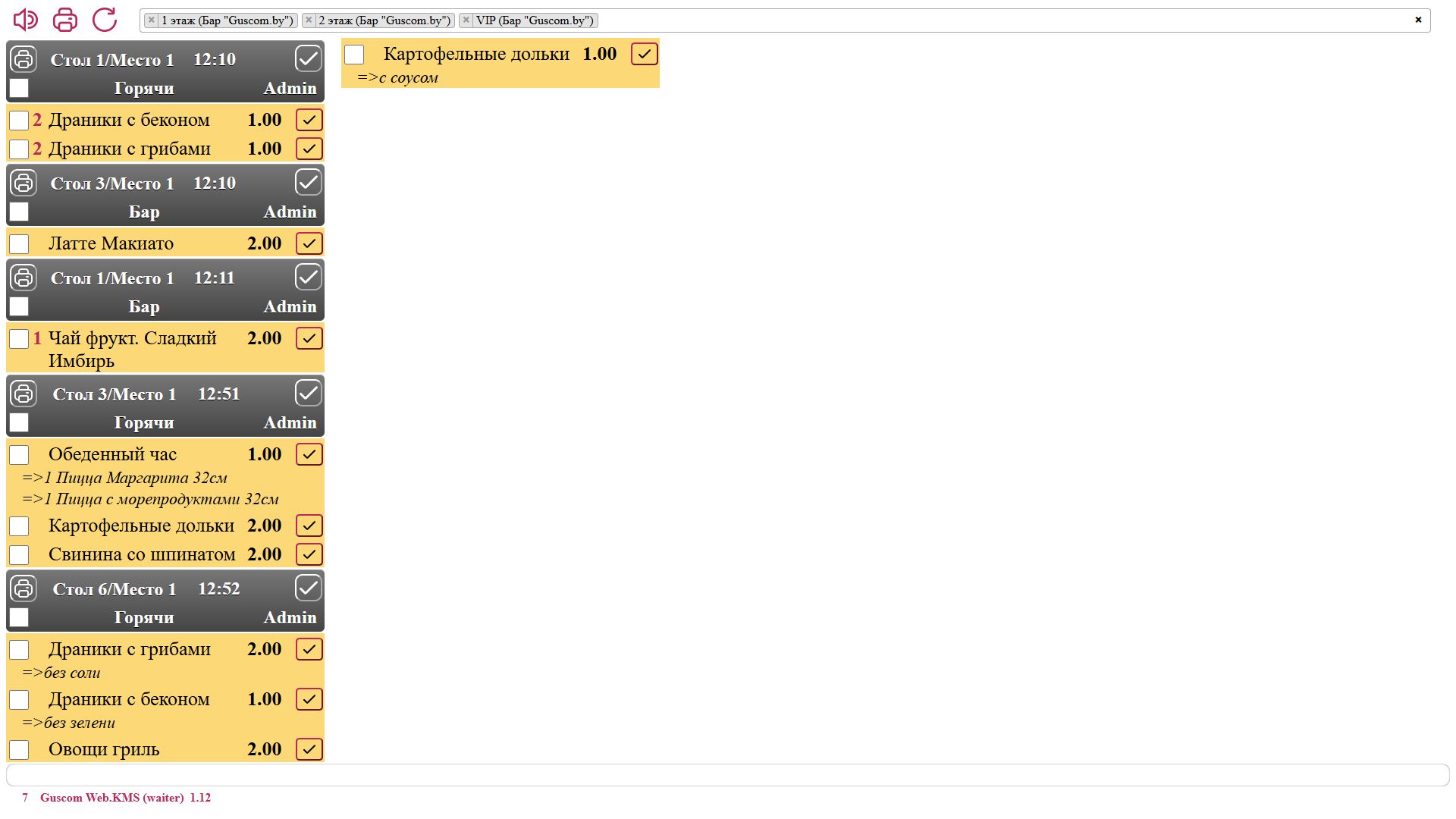 На рынке сейчас немало решений подобного рода. Среди них Guscom.KMS - интерактивная системой обработки заказов и обеспечения взаимодействия «зал – кухня». В ее функции входит: