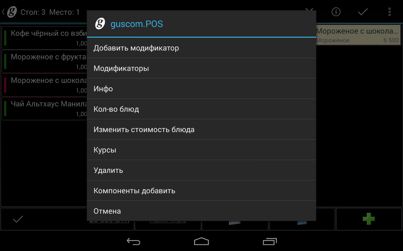 Программное обеспечение guscom.TABLET- это полнофункциональное решение, являющееся заменой традиционного POS-терминала! Может быть установлено как на мобильный телефон, так и планшет на базе OS Android, с которыми работает персонал при приёме заказа и его дальнейшем сопровождении.