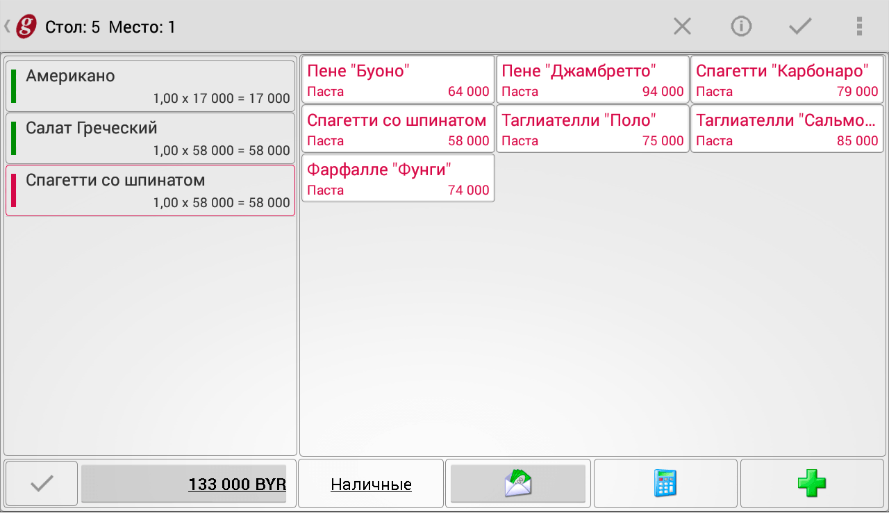 качественное Wi-Fi покрытие в зоне работы официантов.
