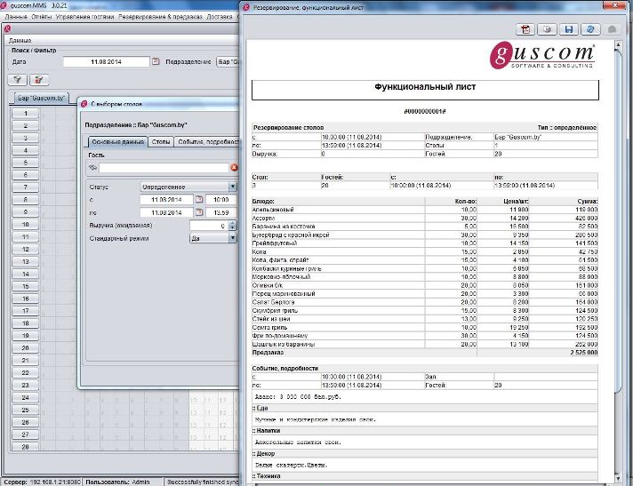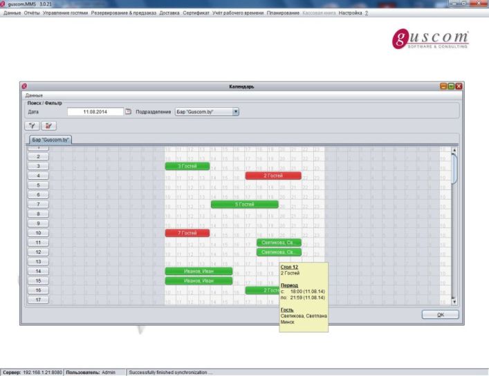 Во всех этих случаях модуль guscom.RESERVATION даст полную и ясную картину, снизит загруженность телефонной линии и предоставит возможность персоналу больше времени заниматься Вашими гостями!