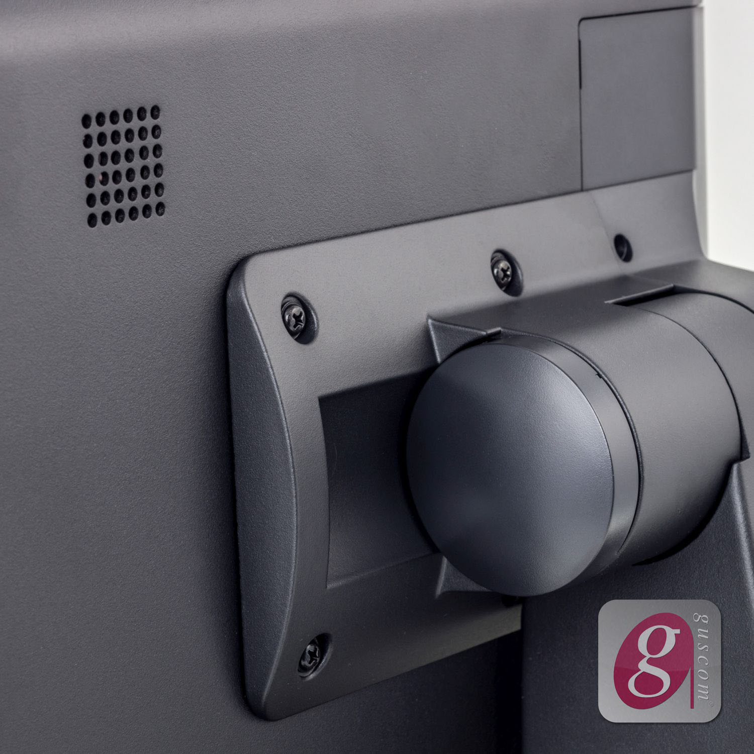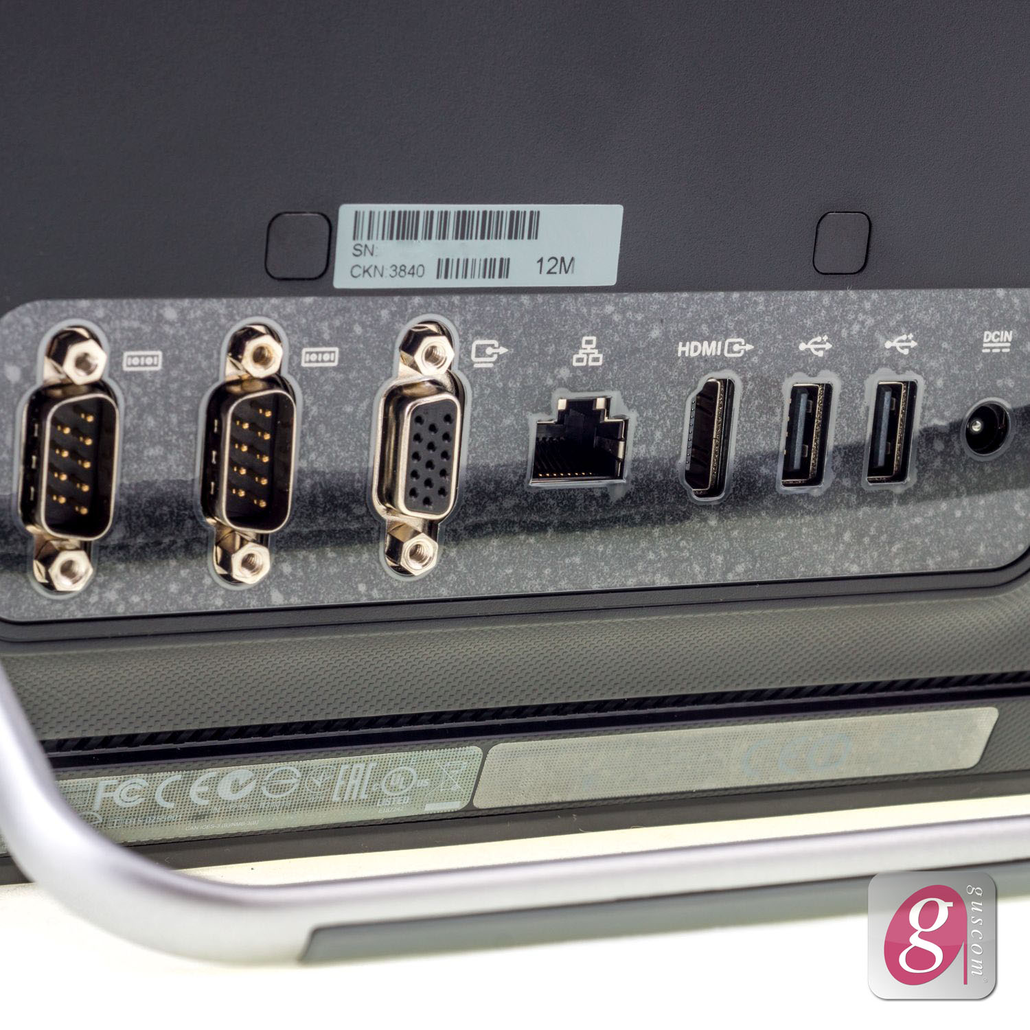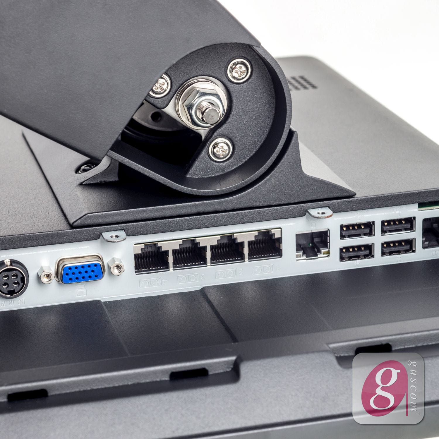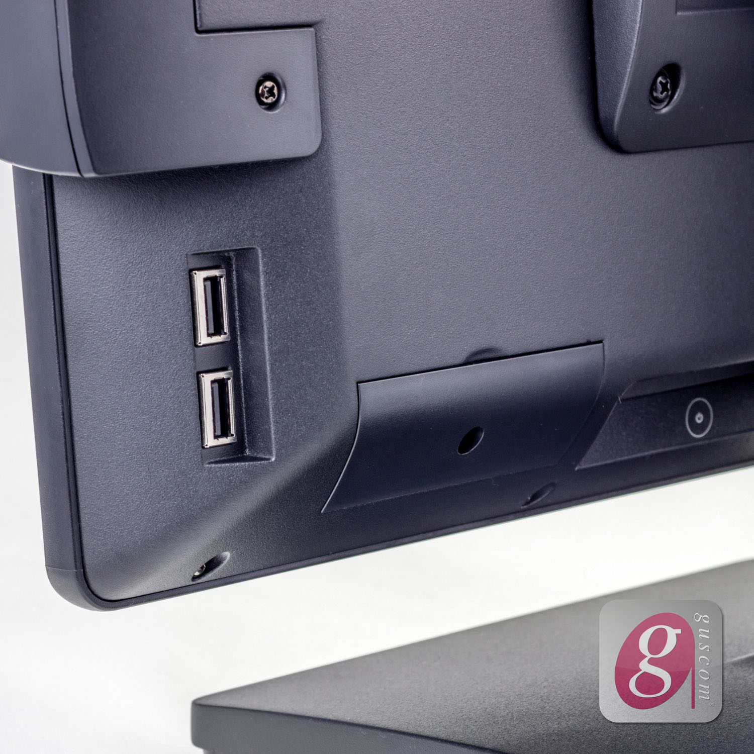Терминал достаточно тяжёлый, это особенно заметно взяв его в руки после ASUS’а. Материал корпуса – алюминиевый сплав. Пластик используется лишь при изготовлении рамки дисплея и крышки, закрывающей разъёмы. Корпус защищён шероховатым матовым покрытием, крайне устойчивым к внешнему воздействию. При этом, не смотря на брутальность материалов, аппарат выглядит очень аккуратно и современно: минималистичный дизайн, плавные линии, элегантная нога-подставка… И что не маловажно, внешний вид не испортят провода, подключенные к терминалу, т.к. они проходят через подставку, а разъёмы закрываются крышкой. Из элементов управления – лишь кнопка включения. Причем сразу найти её получится далеко не у всех - она спрятана на обратной стороне в нижней части дисплея, ровно по центру в утопленной нише. На первый взгляд, такое решение кажется странным и неудобным, но производитель пошёл на такой шаг специально, исключив возможность случайного нажатия на кнопку в процессе работы. Рядом с кнопкой находится и индикатор включения терминала. Стоит на столе Otek очень устойчиво. Даже отклоняя на значительный угол в любую сторону при попытке уронить – он упорно возвращается в исходное положение. Не получается его и «случайно» скинуть – большие резиновые ножки крепко цепляются за поверхность. Механизм регулировки угла наклона крайне надёжен и прочно удерживает монитор в заданном положении. Ножка-подставка – съёмная. Поэтому Otek, как и ASUS, можно закрепить к стенке с помощью VESA-кронштейна. Корпус лишён вентиляционных отверстий. Лишь для динамика сделаны небольшие прорези. Детали корпуса собраны очень хорошо, отсутствуют зазоры и люфты. Т.о. можно утверждать, что OTEK пыле- влаго- защищённый.