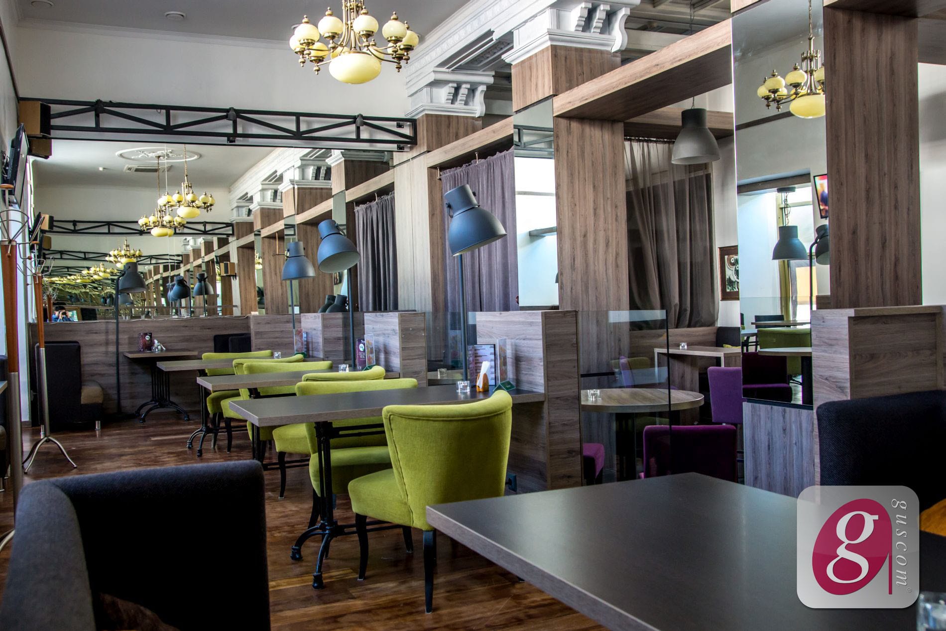 Интерьер кафе наполнен домашним теплом и уютом, сочетающимися с актуальными цветовыми гаммами. В наполненном светом зале детский смех и веселые компании чередуются с влюбленными парочками, тихо воркующими под нотки романтичной фоновой мелодии. В теплое время года гостей принимает летняя терраса. Каждый клиент имеет доступ к бесплатной сети Wi-Fi.