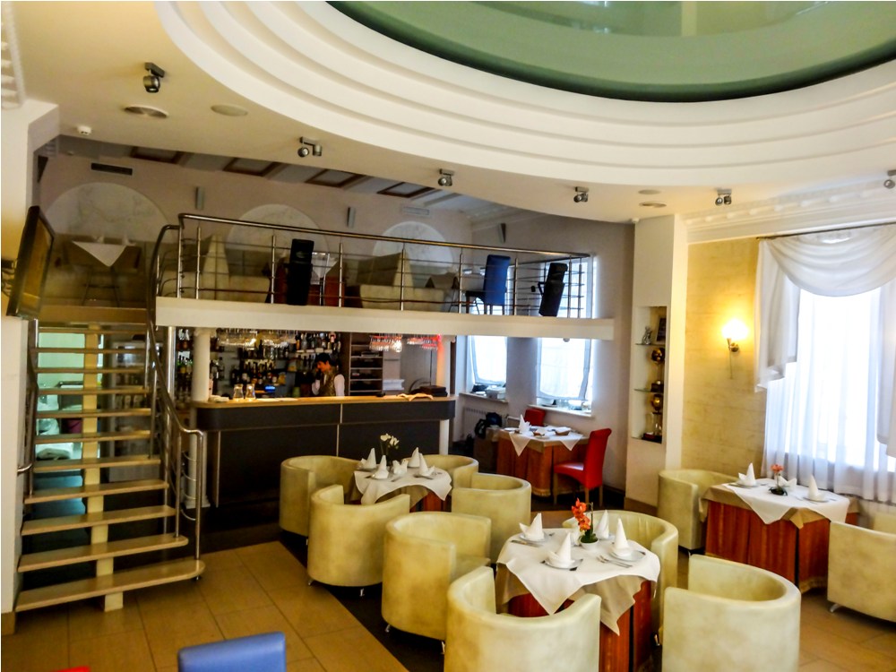 Интерьер в светло-мраморных тонах, живая музыка, европейская и белорусская кухня….Все это завораживает и притягивает, как притягивает переливающиеся и танцующие струйки воды…