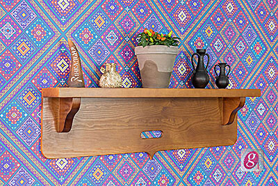 Интерьер ресторана в целом простой и ни к чему не обязывающий, а потому, наверное, и такой приятный глазу: мебель в коричневых тонах, национальный орнамент (разумеется, грузинский), декор из керамики.