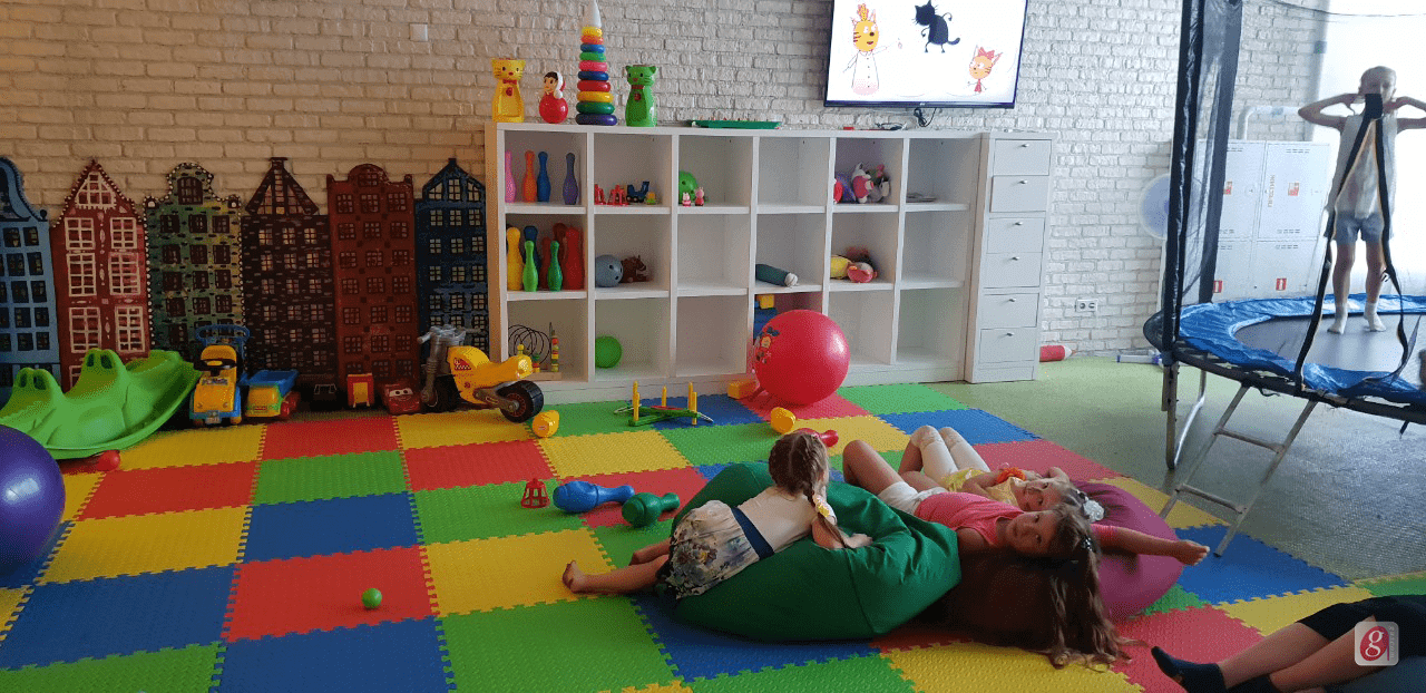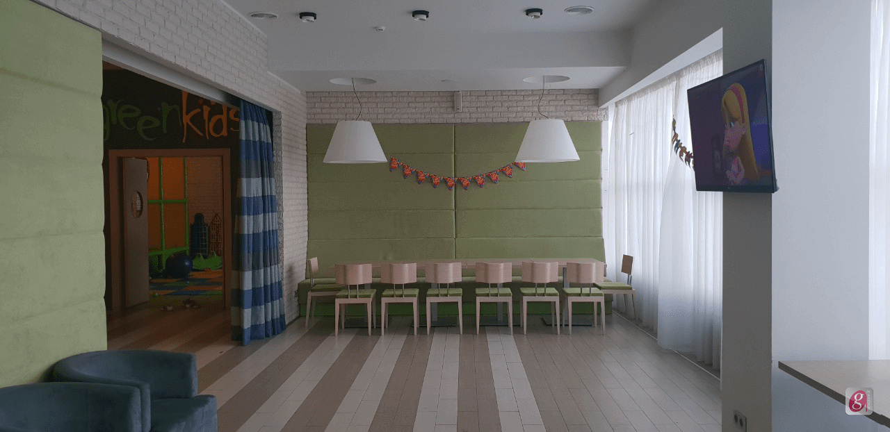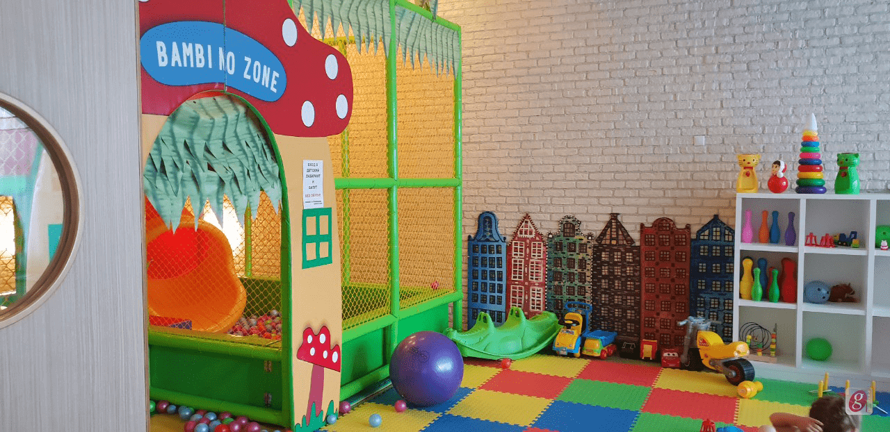 В это заведение вложена очень интересная концепция: объединение детского центра и кафе-бара. Хоть всё заведение и оформлено на основе одного дизайна, каждая из секций имеет свою стилистическую особенность. В игровой зоне размещен лабиринт, батут и «сухой» бассейн, а так же множество различных развивающих игр, фитболы и мягкие кресла-груши. Одним словом, есть всё, чтобы малыш мог весело и беззаботно провести время. А пока ребенок резвится, Вы можете спокойно наблюдать за ним из зала кафе, балуя себя теплым фруктовым чаем и вкусным десертом. А может Вы хотите присоединиться к развлечениям своего ребенка? Добро пожаловать!